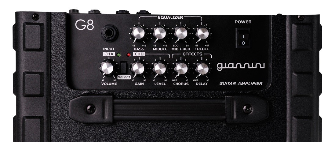 Amplificador compacto para guitarra com drive e efeitos (20W)Alto-falante: 8Canais: 2 (Clean e Distortion), com efeitos Chorus e DelayEqualizador: 3 bandas (Bass, Middle/Mid Freq., Treble)Entrada(s): INPUT (1/4 mono), AUX IN (1/4 estéreo), MP3 IN (1/8 estéreo)Saída: Para fone de ouvido estéreoCantoneira: Plásticas de alta resistênciaAlças: 1 de mão (anatômica)Dimensões: 303 x 160 x 306 mmGarantia: 3 mesesPeso Líquido: 4,800 Kg - Vantagens e Descontos